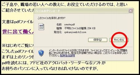 もしもこういう表示が出ましたら、キャンセルをクリックしてください。